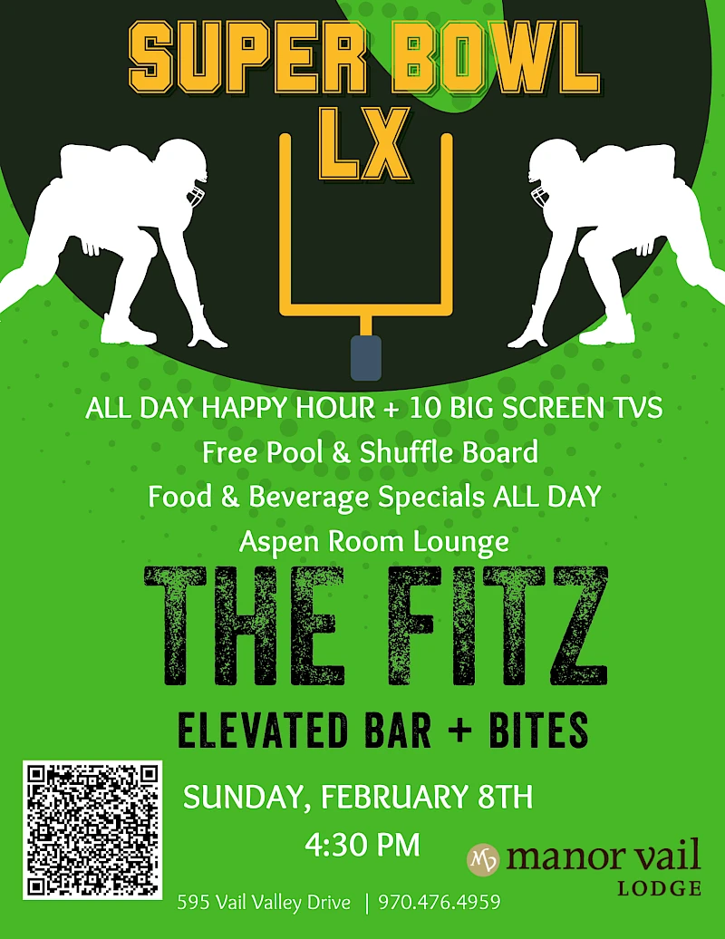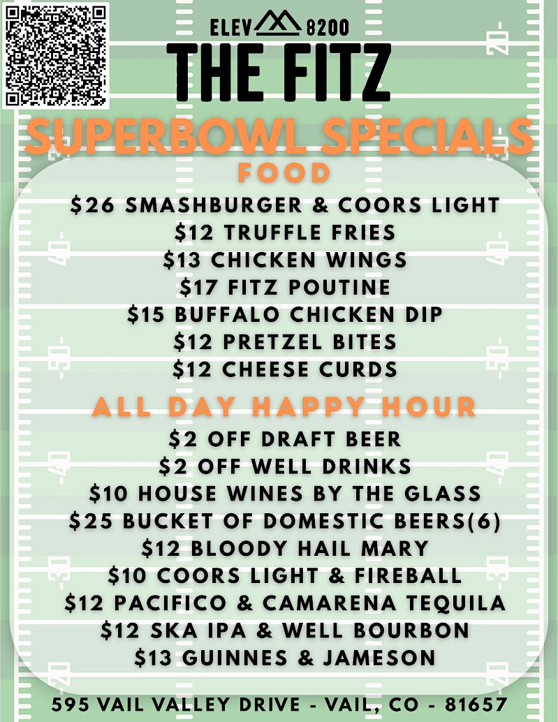 Join us in the Aspen Room Lounge for the big game with 10 big screens, all-day happy hour, free pool and shuffle board, and unbeatable food and drink specials.
